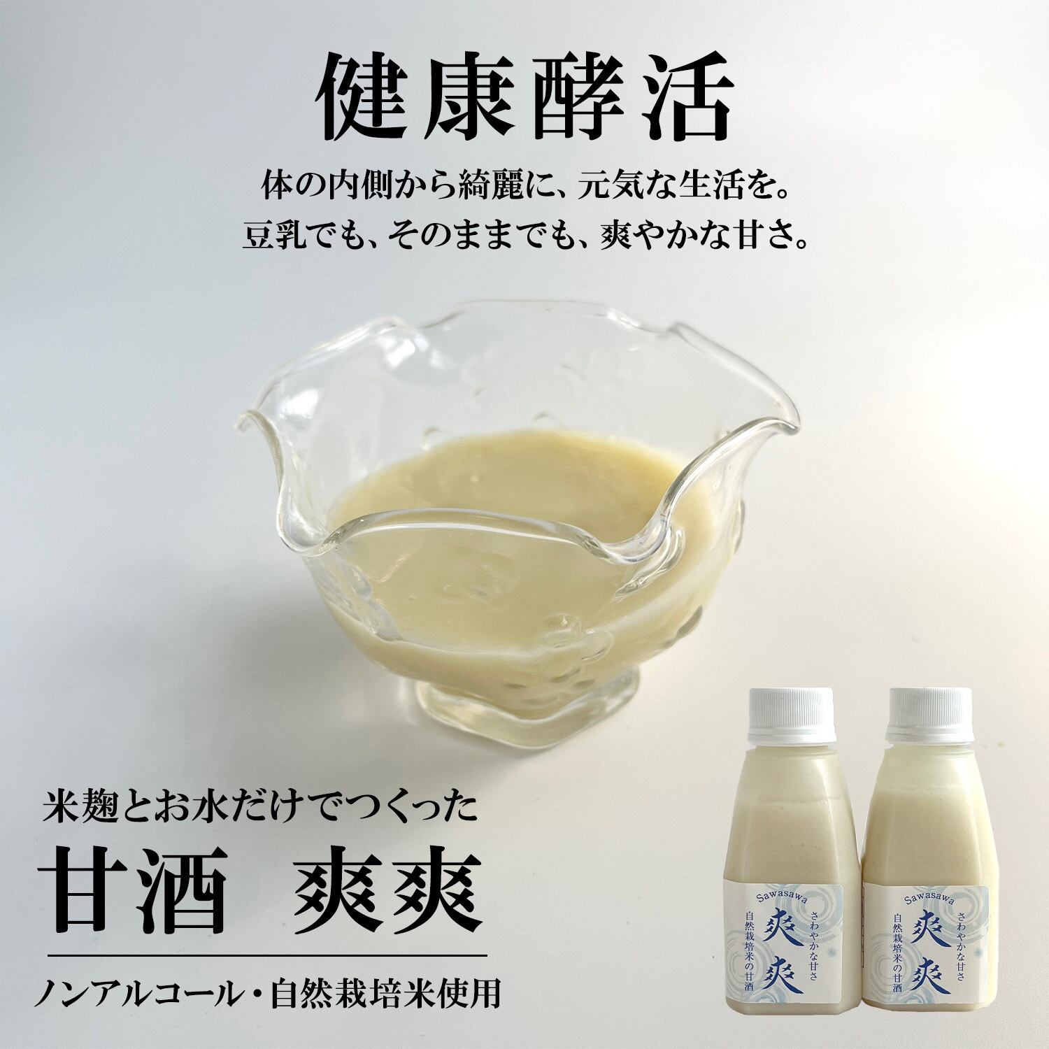 甘酒麹で作る<甘酒 爽爽>自然栽培米の甘酒麹を使用した爽やかな甘さ6本セット